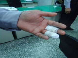 第一時(shí)間上前處理的一名警員,在奪刀之際也不慎被傷及左手中指及無名指(圖片來自臺(tái)媒)