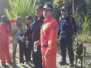 這次建功找到失蹤者的是特搜隊的搜救犬“萊麗”,特搜中隊小隊長袁明桂觀察到搜救犬“萊麗”有明顯不一樣的反應,立即放狗隨其前進!叭R麗”剛開始邊走邊聞,越接近目標叫聲不同且速度加快,搜救人員緊跟著一直往一般人無法行走的陡峭坡度下切溪谷,半個多小時后,在長滿野生牧草的山區(qū)尋獲失蹤老翁。老翁身上僅著內(nèi)衣且在發(fā)抖,但生命征象穩(wěn)定,奇跡似的在2天未進食的狀態(tài)下仍意識清醒,隨后由搜救人員背負下山,后送旗山醫(yī)院檢查健康狀況。