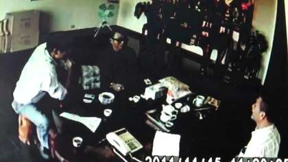竹聯(lián)幫吳姓堂主恐嚇被害人場景被監(jiān)視器拍下。(圖片來自臺媒)