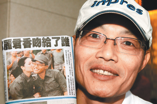 當(dāng)年幸運(yùn)被鄧麗君獻(xiàn)吻、五十三歲的薛進(jìn)友昨天現(xiàn)身,當(dāng)年他還只是21歲的小伙子。圖自臺灣《聯(lián)合報(bào)》