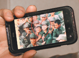 當(dāng)年幸運(yùn)被鄧麗君獻(xiàn)吻的薛進(jìn)友,將他與鄧麗君的合影放進(jìn)手機(jī)隨身攜帶。圖自臺灣《聯(lián)合報(bào)》