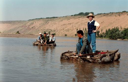 制作團(tuán)隊(duì)坐羊皮筏子橫渡黃河(圖片來自臺(tái)媒)
