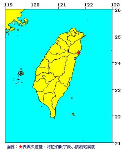震央位于宜蘭縣南澳鄉(xiāng),震源深度9.5公里。(圖片來(lái)自臺(tái)媒)