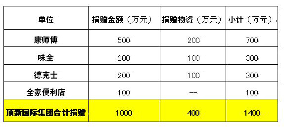 頂新國際集團(tuán)支援震災(zāi)投入一覽。(數(shù)據(jù)由頂新國際集團(tuán)官方提供)