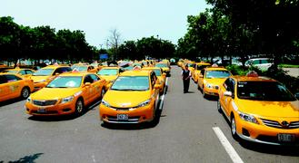 臺灣高鐵臺南站外上百輛出租車等不到客人,司機只能下車避暑。(來源:臺灣《聯(lián)合報》)