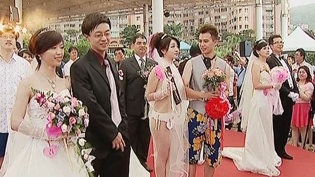 聯(lián)合婚禮上新娘比基尼吸睛(圖片來(lái)自臺(tái)媒)
