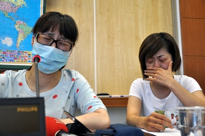 臺(tái)灣“特宏興368號(hào)”海上喋血,漁船船長(zhǎng)與輪機(jī)長(zhǎng)疑遭印尼漁工殺害。船長(zhǎng)陳德生的兩名女兒27日在記者會(huì)中難過落淚。(來源:臺(tái)灣“今日新聞網(wǎng)”)