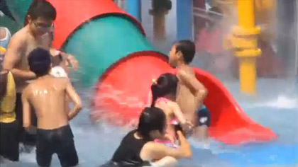 臺北市中午出現(xiàn)今夏最高溫,臺北自來水源區(qū)擠滿戲水民眾。(圖片取自臺灣媒體)