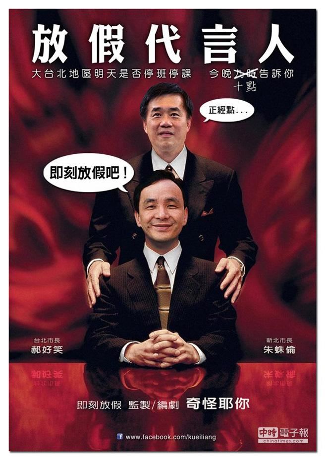 郝龍斌、朱立倫化身“放假代言人”。(來源:臺灣《中國時報》)
