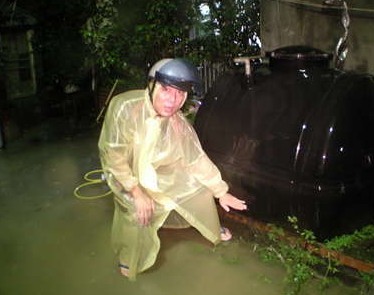陳姓里民表示積水最深達(dá)到膝蓋高度。(圖片來自臺媒)