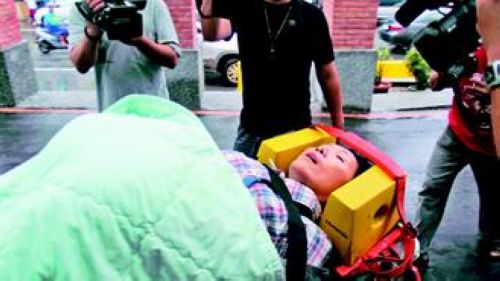 南回自強號列車撞土石堆出軌,李姓婦人腰椎受傷,須住院治療。圖片來源:臺灣《聯(lián)合報》