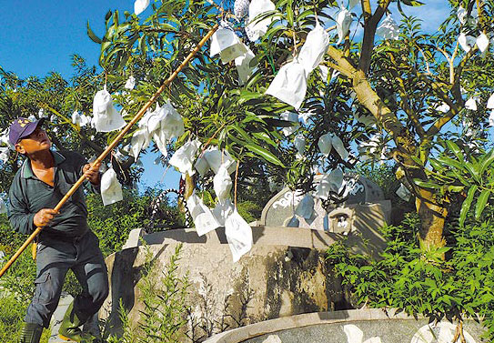 當?shù)毓r(nóng)對在公墓種芒果見怪不怪,潘姓果農(nóng)說:“自有印象以來,兩者就共存!彼自豪:“種在山坡地比較不會積水,會比平地種的更甜!币幻r(nóng)則說,在公墓種芒果已幾十年,“剛開始摘也會怕,久了就習慣了!彼理直氣壯說,公所沒有收租金,“我們算是在使用跟管理,沒有使用,這里就雜草叢生。”