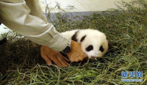 大熊貓保育員幫“圓仔”更換全新“竹葉床”(9月5日攝)。近日,贈臺大熊貓“圓圓”產(chǎn)下的寶寶“圓仔”已滿兩個月,保育員為“圓仔”更換了全新“竹葉床”,以保證它安穩(wěn)舒適地睡覺。據(jù)介紹,“圓仔”以前睡的“嬰兒床”由媽媽“圓圓”用自己的食物——竹葉鋪成,“圓圓”和“圓仔”“分床睡”。