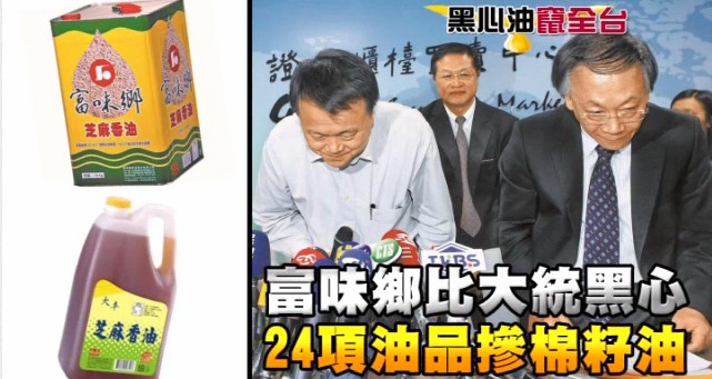 臺(tái)灣食用油全面危機(jī),富味鄉(xiāng)比大統(tǒng)黑心。(臺(tái)媒圖)