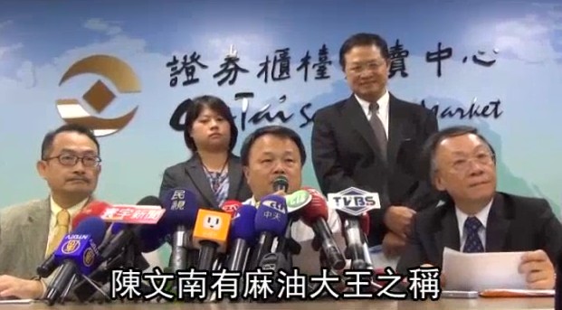 周四認(rèn)錯(cuò),富味鄉(xiāng)本周一才保證油品沒問題,但董事長(zhǎng)陳文南(中)及經(jīng)理王彬任(右)昨坦承產(chǎn)品含棉籽油,鞠躬致歉。(臺(tái)媒圖)