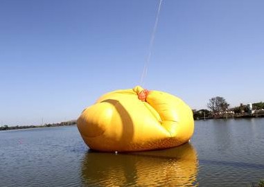 中國臺灣網11月8日消息 據(jù)臺灣媒體報道,桃園黃色小鴨,今天中午12時在高雄市政府人員確認后小鴨開始充氣,十幾分鐘完成,F(xiàn)場民眾和小朋友目睹小鴨從后湖塘慢慢升起,幫忙喊“小鴨加油!”(中國臺灣網 高旭)