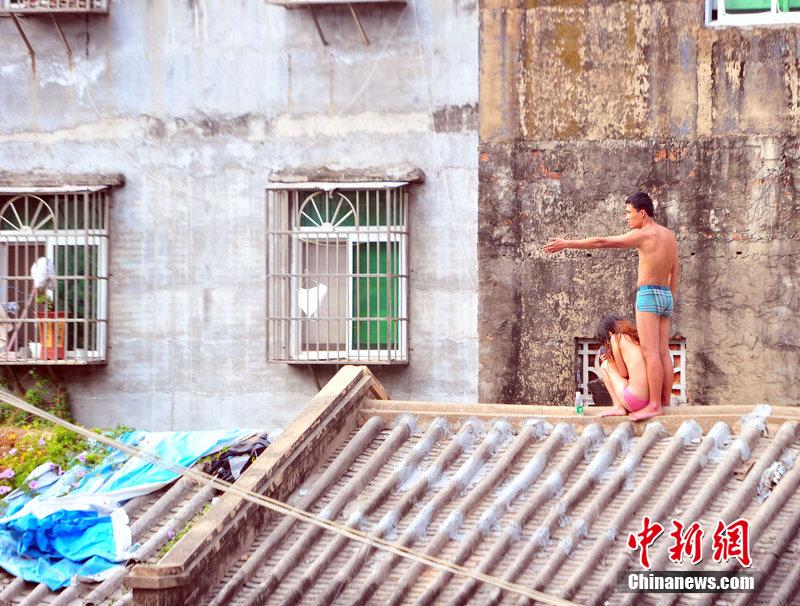 據(jù)現(xiàn)場(chǎng)一名目擊者介紹,今天(1月20日)上午8點(diǎn)多,一名20多歲的男子在樓頂上要求女子脫下衣服,僅剩下一條內(nèi)褲,而他自己也脫光了衣服。