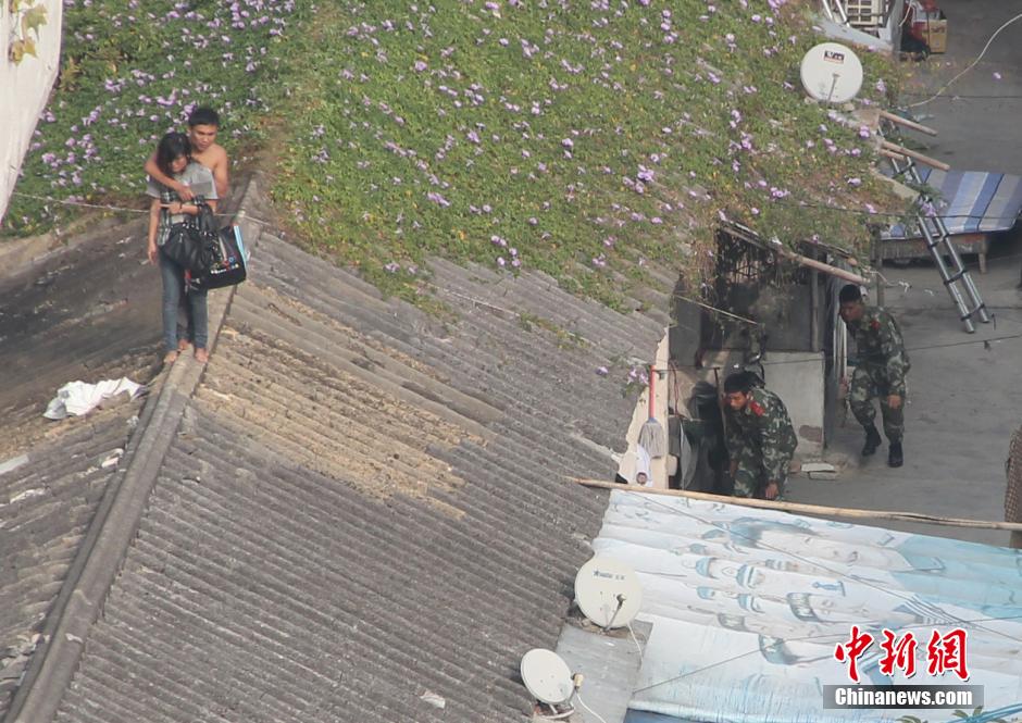 1月20日,海南省三亞市解放二路發(fā)生一起劫持人質(zhì)案件。警方經(jīng)過近5個(gè)小時(shí)的周旋,制服劫持人質(zhì)的持刀男子,成功解救被劫人質(zhì),人質(zhì)安然無恙。當(dāng)日上午,林某平(男,30歲,海南萬寧人,已婚,有三名子女)因感情糾紛,持一把菜刀將其女友(李某,24歲,海南萬寧人)挾持到屋頂。中新社發(fā) 周君 攝