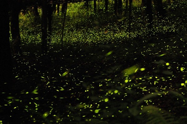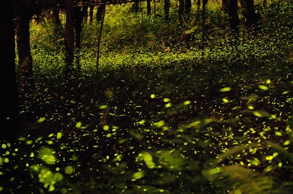 數(shù)萬只螢火蟲飛舞林間,許多人形容置身其中就像掉入星河。(圖片來自臺(tái)媒)