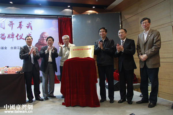 臺(tái)盟中央副主席黃志賢與參會(huì)嘉賓共同為“和平發(fā)展創(chuàng)新交流基地” 揭牌。(中國臺(tái)灣網(wǎng) 王怡然 攝)