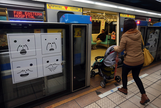 坐捷運(yùn)(即地鐵)也可看插畫,臺北市觀光傳播局表示,從4日起,臺北捷運(yùn)忠孝復(fù)興站、市府站、圓山站的月臺門,可看到掰掰啾啾、迷路等插畫家作品。(文、圖/臺灣“中央社”)