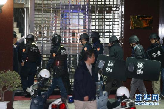 2月11日,警察聚集在高雄大寮監(jiān)獄。臺(tái)灣高雄大寮監(jiān)獄11日下午發(fā)生挾持事件,6名服刑人員搶奪槍支,挾持典獄長(zhǎng)等人質(zhì),警方隨后派出逾200警力及特警荷槍實(shí)彈包圍監(jiān)獄。截至22時(shí),這6名服刑人員仍在與警方對(duì)峙,尚無(wú)人員傷亡。新華社發(fā) 圖片來(lái)源:新華網(wǎng)