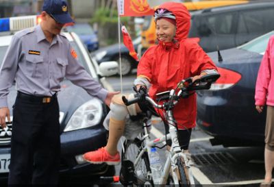 瑞芳分局警察表示,郭韋齊7歲就因病截肢,卻能爬上臺(tái)灣最高峰玉山,又一路騎著單車環(huán)島,其精神實(shí)在令人敬佩和感動(dòng),又令人不舍,所以,趁著7日休假,特地為她加油打氣。