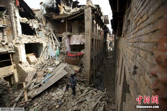 4月25日,尼泊爾發(fā)生里氏8.1級地震,首都加德滿都大量房屋倒塌,部分道路堵塞中斷。圖為尼泊爾民眾在廢墟中尋找親人。