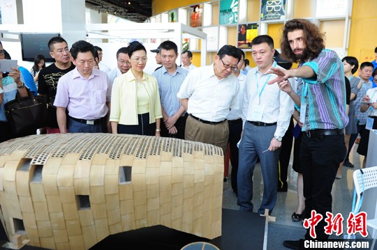圖為陳德銘會(huì)長饒有興致參觀西班牙創(chuàng)客設(shè)計(jì)的概念屋。 中新社發(fā) 陳文 攝