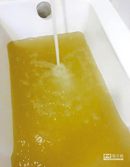 臺北市議員王鴻薇家中的自來水,在11日晚上11:30分仍呈現(xiàn)黃濁色。圖:臺灣“中時電子報”