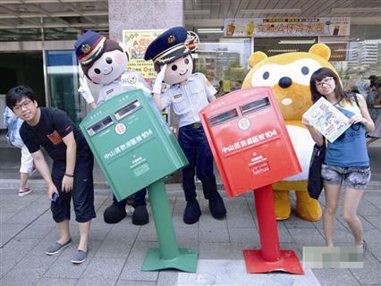 據(jù)臺(tái)灣“中時(shí)電子報(bào)”13日?qǐng)?bào)道 臺(tái)北市龍江路2個(gè)臺(tái)風(fēng)天被招牌砸歪的“彎腰郵筒”,目前已成為熱門觀光景點(diǎn),吸引許多民眾排隊(duì)等待合影。轄區(qū)警察局為維護(hù)交通安全,除了派人協(xié)助交通疏導(dǎo)外,近日又安排警察扮演Q版警察人偶,現(xiàn)場(chǎng)向市民宣傳如何防詐騙、防扒竊,吸引更多人合影留念。(海峽導(dǎo)報(bào)記者)