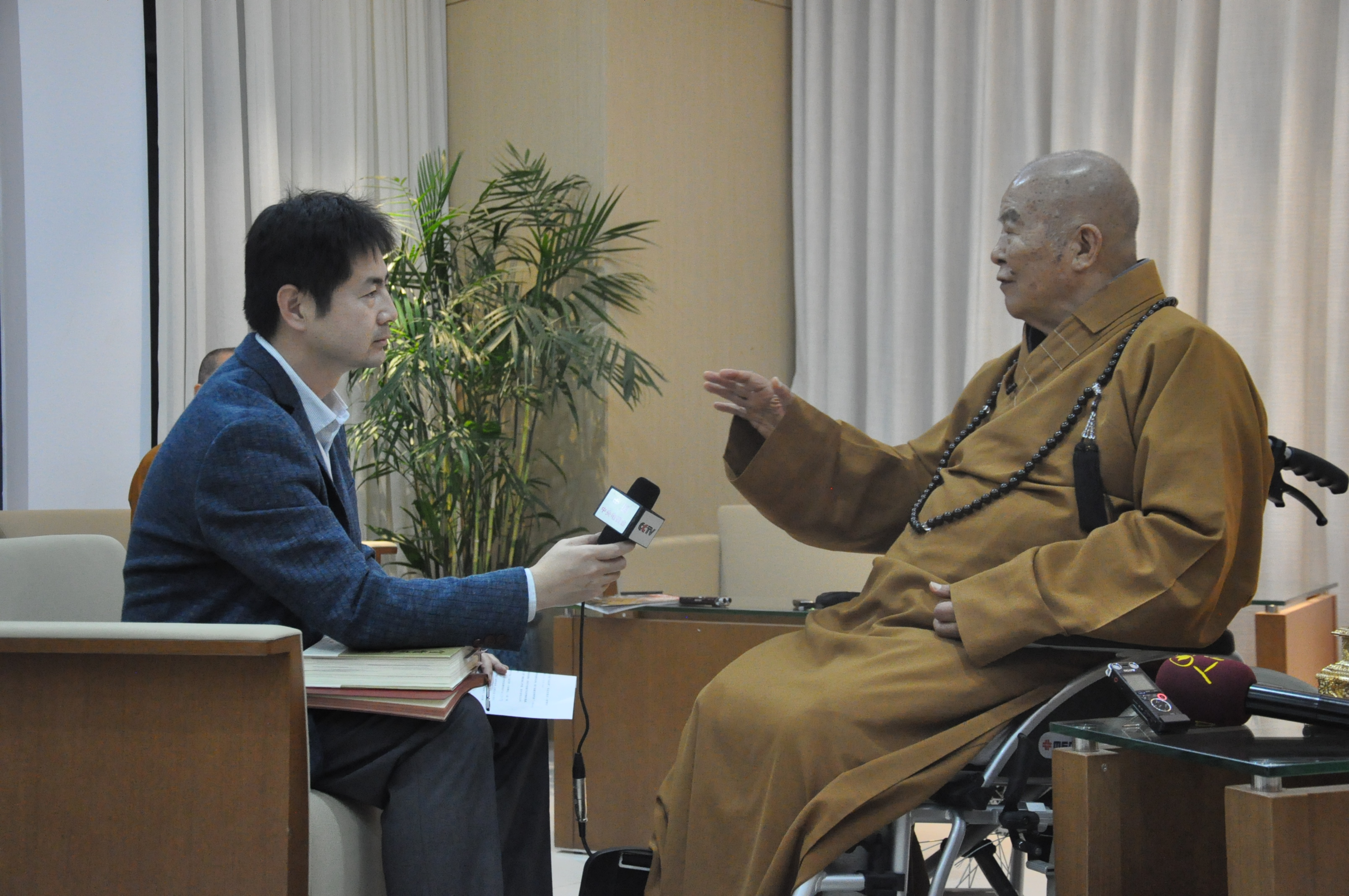 環(huán)球時報記者谷棣采訪星云大師。