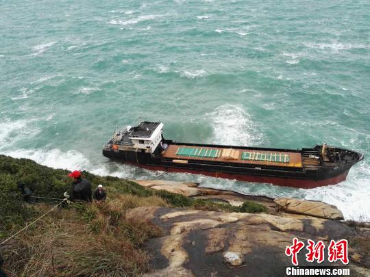 一艘臺(tái)灣籍貨船23日在珠海擔(dān)桿島擱淺,珠海搜救中心協(xié)調(diào)擔(dān)桿鎮(zhèn)政府及各搜救成員單位前往救援,在風(fēng)浪中遇險(xiǎn)船上6名船員被島上軍民合力救上岸。 曾志遠(yuǎn)攝