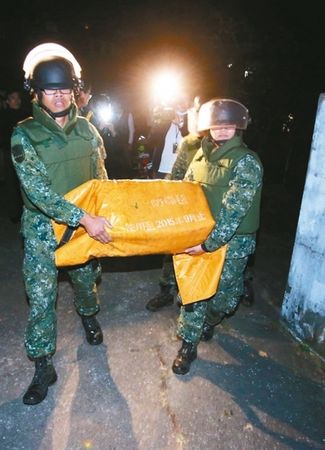 臺(tái)軍方派人帶走水泥塊調(diào)查。來(lái)源:臺(tái)灣《聯(lián)合報(bào)》