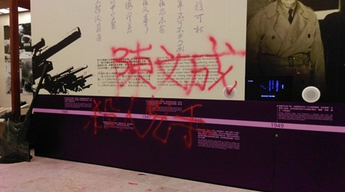 據(jù)臺灣《聯(lián)合報(bào)》報(bào)道,臺北中正紀(jì)念堂主體堂一樓展廳,今天下午1點(diǎn)多遭10多名不明人士噴漆,監(jiān)視器值班人員實(shí)時(shí)發(fā)現(xiàn),通報(bào)館內(nèi)同仁,并報(bào)警處理。臺北市警局中正一分局警察獲報(bào)趕抵,將現(xiàn)場參與人帶回轄區(qū)派出所詢問。
