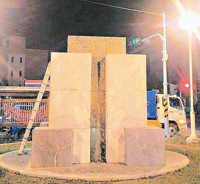 臺(tái)南佳里區(qū)蔣公像昨凌晨遭公所拆除,僅剩塑像基座。(圖片來源:臺(tái)灣聯(lián)合報(bào))