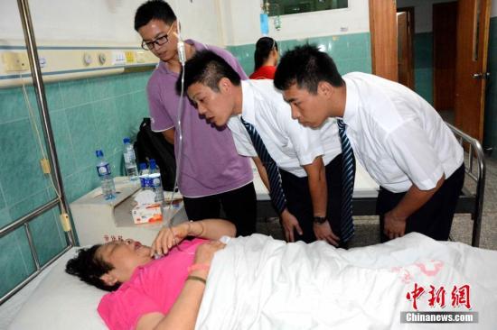 8月13日上午,一輛載有21名臺(tái)灣游客的旅游大巴在前往福建省龍巖市永定區(qū)湖坑鎮(zhèn)附近突遇山體滑坡引發(fā)的道路塌方,導(dǎo)致車輛被沖翻,1人罹難、2人重傷、其他游客輕傷。經(jīng)當(dāng)?shù)叵啦块T和附近居民第一時(shí)間全力搶救,傷員被及時(shí)送往當(dāng)?shù)蒯t(yī)院接受救治,均無生命危險(xiǎn)。事故發(fā)生后,國臺(tái)辦、國家旅游局等有關(guān)部門高度重視,指導(dǎo)有關(guān)方面做好善后。福建省迅即啟動(dòng)突發(fā)事件應(yīng)急處理機(jī)制,成立事故處理小組并派專人趕赴事故現(xiàn)場(chǎng),全力開展善后工作。圖為臺(tái)灣義工到醫(yī)院詢問傷者情況和做好安撫工作。中新社記者 張金川 攝