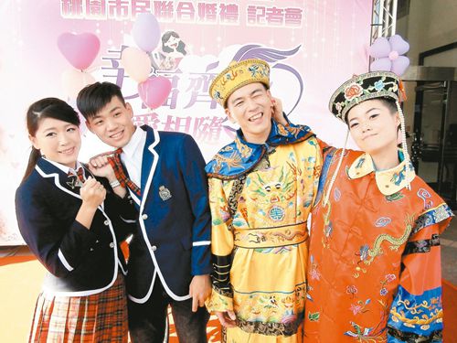 蔡伊婷(左起)、邱維德、周士杰、邱鎵楨都是軍人,決定參加聯(lián)合婚禮。臺(tái)灣《聯(lián)合報(bào)》記者施鴻基/攝影