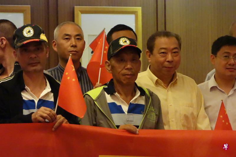 臺灣籍輪機長王沈瑞章(中)在大陸海協(xié)會副秘書長王小兵陪同下抵達廣州。