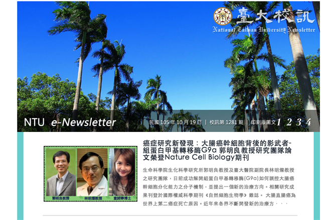 臺(tái)大曾在校訊上刊出研究團(tuán)隊(duì)榮登國(guó)際期刊的新聞(圖片來(lái)源:“中時(shí)電子報(bào)”)