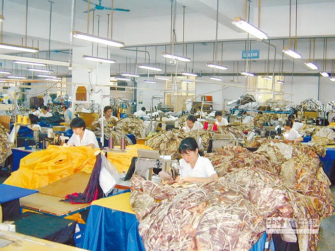 “一例一休”新規(guī)通過,傳統(tǒng)產(chǎn)業(yè)為避免成本增加,只好盡量不要加班,圖為風雨衣生產(chǎn)工廠員工忙碌趕工。(圖片來源:臺灣《中時電子報》)