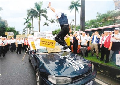 圖為臺灣出租車行業(yè)抗議優(yōu)步“違法營運”。