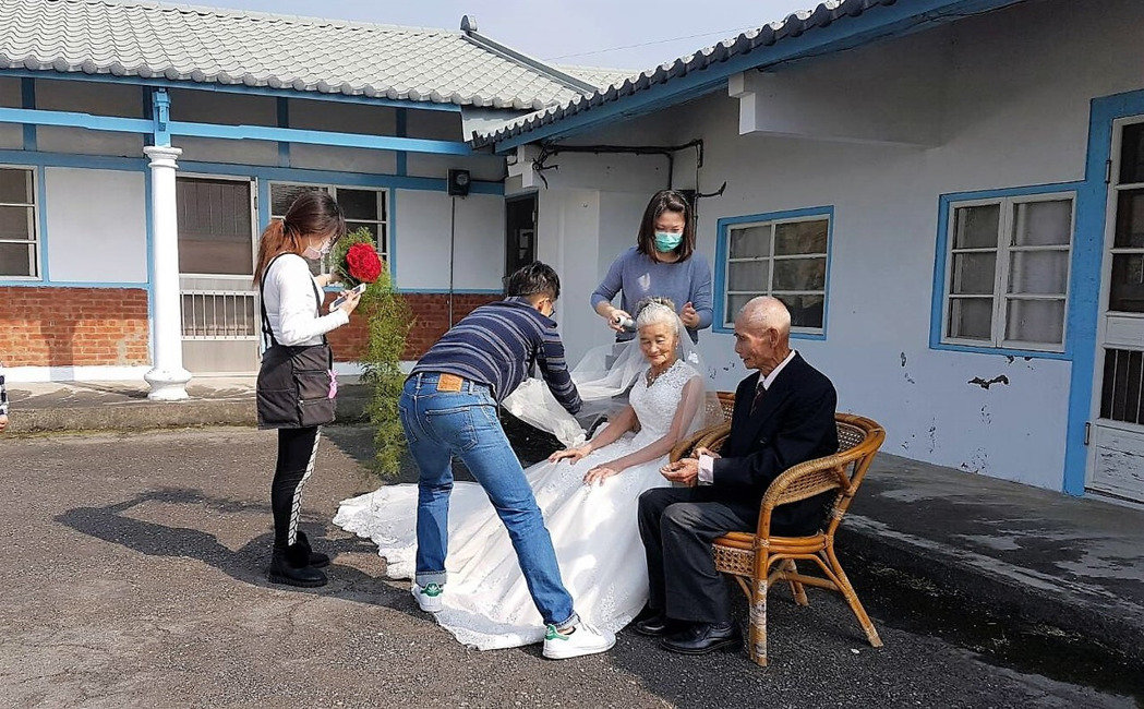 據(jù)臺(tái)灣媒體報(bào)道,嘉義縣太保市公所為舉辦市長就職2周年及“幸福太保 感恩有你”金婚楷模表揚(yáng)活動(dòng),今天為轄區(qū)14對金婚夫妻定裝、拍攝婚紗照。86歲阿嬤抗拒穿白紗,并表示62年前就結(jié)婚了,現(xiàn)在這么老還拍婚紗照,“你會(huì)害我被人笑!”