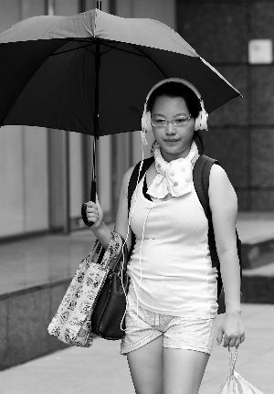 走在臺(tái)北街頭,處處可見(jiàn)著短裙、打陽(yáng)傘的年輕女孩(如圖),即便是畏寒的老人家也只是披一件較輕薄的外套。