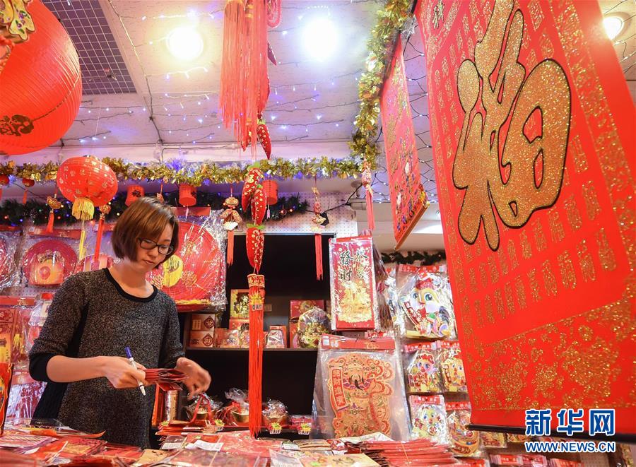1月12日,在臺北市大同區(qū),商家在店內(nèi)整理年貨。春節(jié)臨近,臺北各大年貨市場進(jìn)入旺季,不少市民前來選購各式年貨,喜迎佳節(jié)。(新華社記者 歐東衢 攝)