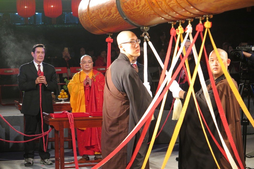 馬英九連續(xù)十年參加法鼓山除夕撞鐘儀式。(圖片來源:臺灣《聯(lián)合報》)