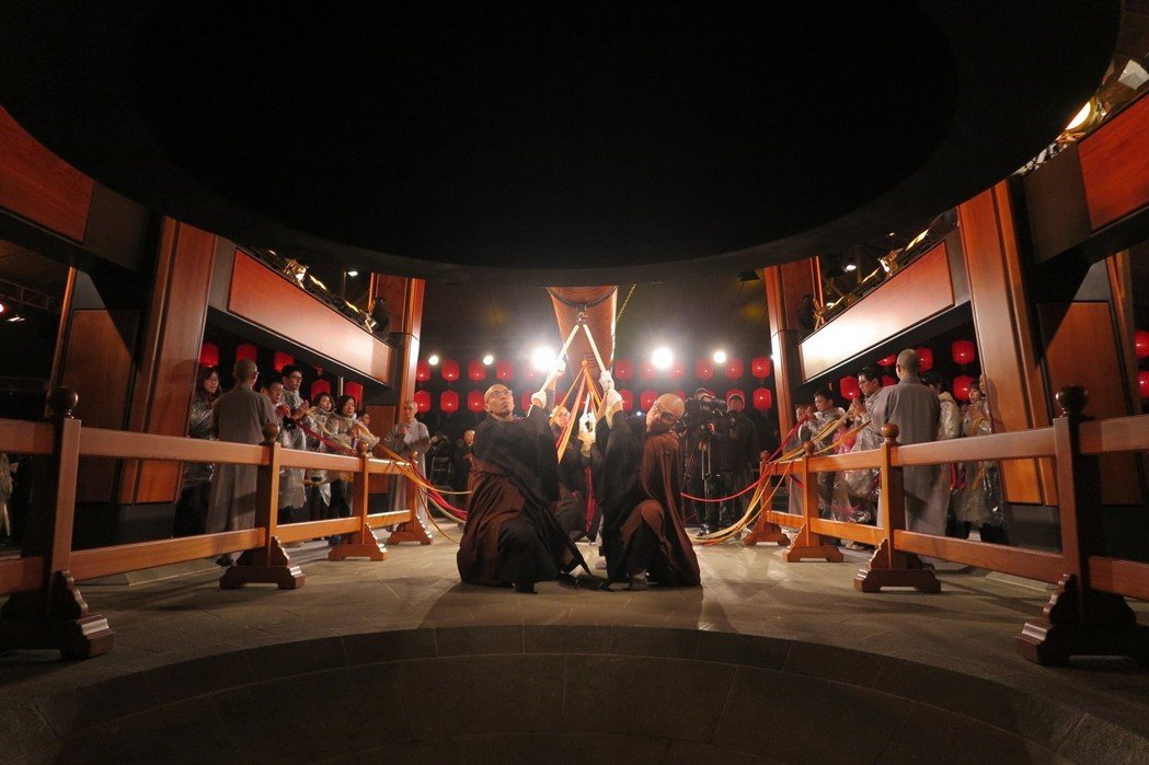 法鼓山連續(xù)11年舉辦撞鐘祈福法會,4名法師奮力撞響108響法華鐘聲。(圖片來源:臺灣《聯(lián)合報》)
