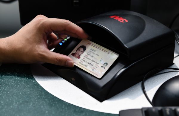 資料圖片:江蘇南京邊檢站警官在南京祿口機(jī)場(chǎng)查驗(yàn)一名臺(tái)胞的電子臺(tái)胞證 新華社記者 李響 攝