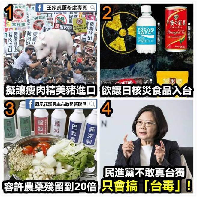 “鳳凰花護民主市政監(jiān)督聯(lián)盟”臉書貼出制圖表示,民進黨不敢真“臺獨”,只會搞“臺毒”。細數(shù)蔡當局上臺后,擬讓日本核災食品進口、擬讓瘦肉精美豬進口、首次開放“氟派瑞”(Fluopyram)使用于茶葉,殘留量為6ppm,高于國際標準,這使得容許農藥殘留提高到20倍。