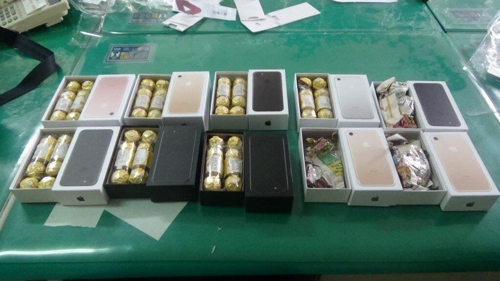 海外網(wǎng)4月6日電 據(jù)臺“聯(lián)合報”報道,彰化市陳姓女子與男友合資在網(wǎng)絡(luò)購買22臺全新蘋果7以及蘋果7 PLUS手機,準備轉(zhuǎn)手賣給經(jīng)銷商賺取差價,沒想到遭詐騙,打開蘋果手機外盒,里面是不到500元新臺幣的整人玩具:8顆金莎巧克力、鐵塊。陳姓女子與男友憤而報案后,臺警方將陳姓嫌犯緝獲,6日依詐欺罪嫌移送法辦。